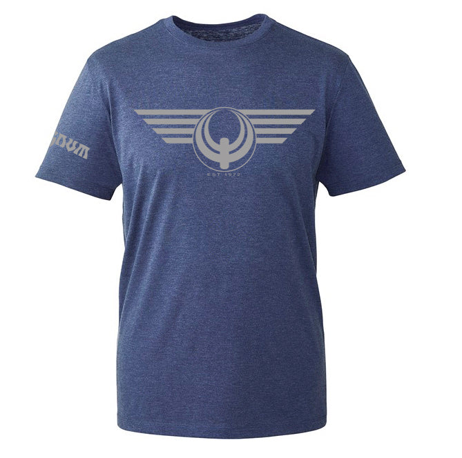 Blue Marl Wings of heaven logo with Magnum on one sleeve.